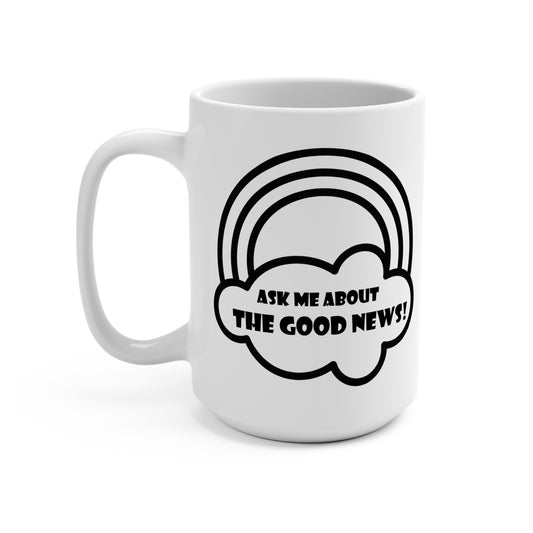 15oz Christian Mug – "Ask Me About The Good News!" – Perfect for Coffee Lovers